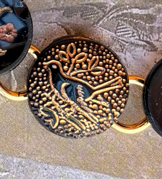 The use of a reflective film behind gold filagree helped to give the buttons a twinkle when they caught the light! I also love that it gives a mixed metal result for those of us who love silver and gold together.