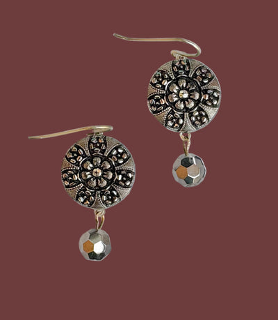 The combination of gold and silver is so interesting and elegant. I used these 1800’s stylized flora buttons & added mixed tone baubles for the drops. History will look so beautiful on you!
